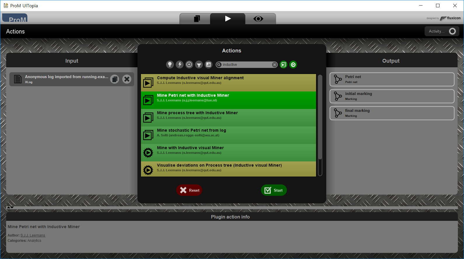 3. Mine Petri net with Inductive miner 플러그인을 선택하고 Start 버튼을 누른다.