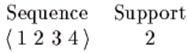 이 L_3으로 부터 얻은 C_4는 <1 2 3 4>, <1 2 4 3>, <1 3 4 5>, <1 3 5 4>가 된다. 이 중 minimum support를 만족하는 sequence는 <1 2 3 4>이다. 이것이 L_4가 된다.
