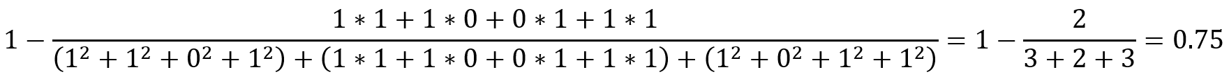case 1의 activity profile과 case 2의 activity profile에 대해 Jaccard distance은 다음과 같은 계산식을 통해 구할 수 있다.