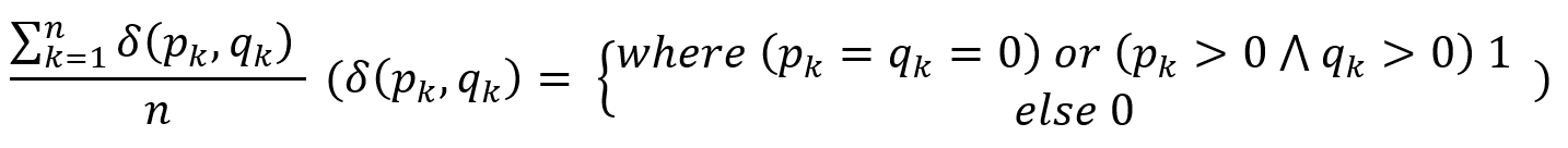 즉, p_k와 q_k가 모두 0이거나 모두 0 초과의 값을 가지면 1, 이외의 경우는 0을 가지고 이들의 합을 전체 profile 길이로 나눈 값을 Hamming distance로 정의한다. 아까 전에 들었던 예시와 같은 activity profile을 가지는 case가 3개 있다고 하자.
