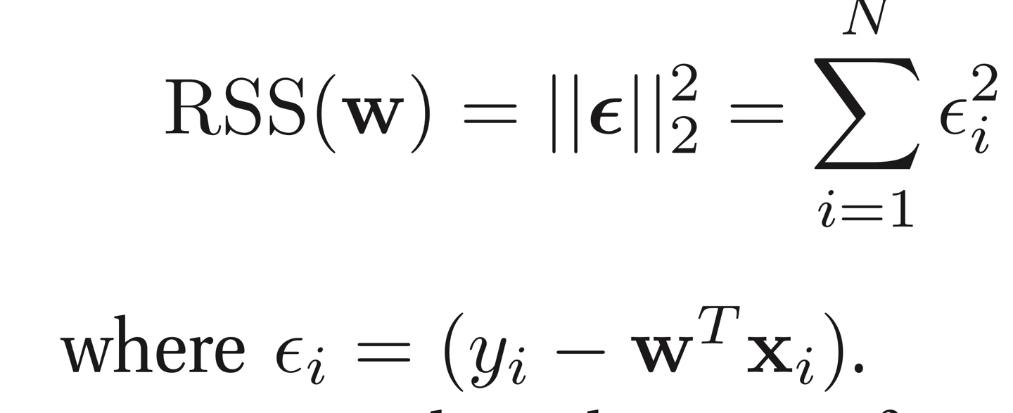 즉, RSS는 실제 값과 예측 값의 차이의 제곱의 합을 의미한다. 이는 다음과 같은 l2 norm 형태로도 표현될 수 있다.