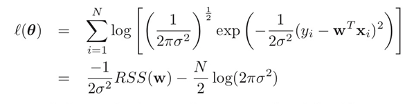 이를 위에서 구했던 linear regression의 likelihood 식으로 바꿔주기만 하면 linear regression의 maximum likelihood를 구할 수 있다. 즉, 이 likelihood를 최대화하려면 상수들을 제외하고 RSS 값을 최소화해야하는 것이다.