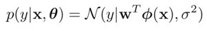 즉, x와 parameter(theta)가 주어졌을 때, y가 해당 분포를 따를 확률을 최대화하는 분포를 찾는 것을 linear regression이라고 할 수 있는 것이다. 그리고 여기서, y가 해당 분포를 따를 확률(posterior)를 정규분포(정확히는 likelihood를 정규분포, prior를 uniform distribution)라고 가정하는 것을 우리는 linear regression 중에서도 Least squares이라고 한다. 그렇다면 여기서, 우리는 x가 단 하나의 값일 때밖에 예측할 수 없는 것일까? 당연히 아니다. 위의 식을 좀 더 일반화시키면 다음과 같이 표현할 수 있다.
