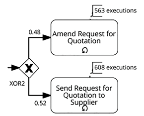 - Conditional branching probabilities: XOR/OR split gate에서의 다음 task 확률 분포를 말한다.