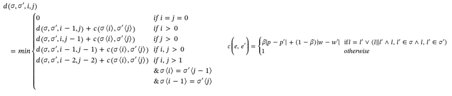 위 식은 Damerau-Levenshtein distance를 cycle time을 반영할 수 있는 형태로 변형시킨 식이다. (Damerau-Levenshtein distance도 ㅁ ㅣㄹ ㅐㅇㅢ ㄴ ㅏ..! 이 모든 걸 설명하다 보면 포스팅이 너무 길어진다.. 지금은 자세한 설명은 위키피디아를 참고하세요 ㅠㅠ)