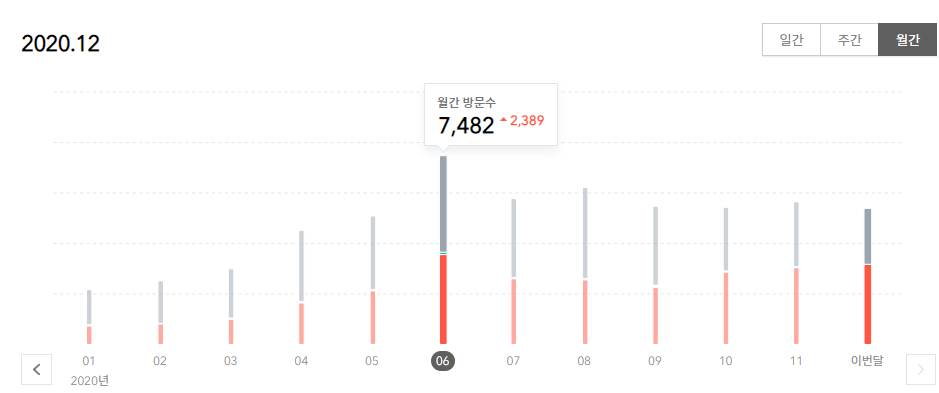 연초에는 성장이 급격한데, 블로그 주인이 블로그에 소홀했던 것만큼 하반기에는 큰 변화가 없다. 내년에도 나 혼자만의 목표가 있는데, 그걸 달성하려면 작년의 나처럼 좀 더 성실해져야 할 듯. 내년에도 분야를 차차 넓혀가려고 하는데, 머신러닝이나 통계학 쪽 이론을 한 번 쭉 다 담아 보고 싶다는 생각이다. 그 후년에는 나의 분석 코드에 자신감이 생겼을 즈음에.. 코드 쪽도 담아볼까 싶다.