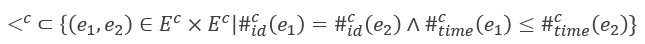 case-level event log는 우리가 알고 있는, 프로세스 마이닝에서 기본적으로 사용하는 그 이벤트 로그를 말한다. case-level event는 case id, activity, time으로 이루어져 있으며 이 이벤트들의 순서는 하나의 케이스 안에서 시간 순서에 따라 정해진다. 이를 수학적으로 나타내면 다음과 같다.