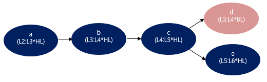 a, b, c, d, e의 system-level event 중에서 서로 related되어 있는 이벤트는 어떤 것이 있을까? 우선, a와 b가 있을 것이다. a의 target activity인 L3과 b의 source activity인 L3가 겹치고, 시간도 겹치는 부분이 있기 때문이다. 이런 방법으로 쌍을 찾으면 (a, b), (b, d), (b, c), (c, e)가 related되어 있다고 판단할 수 있다.
