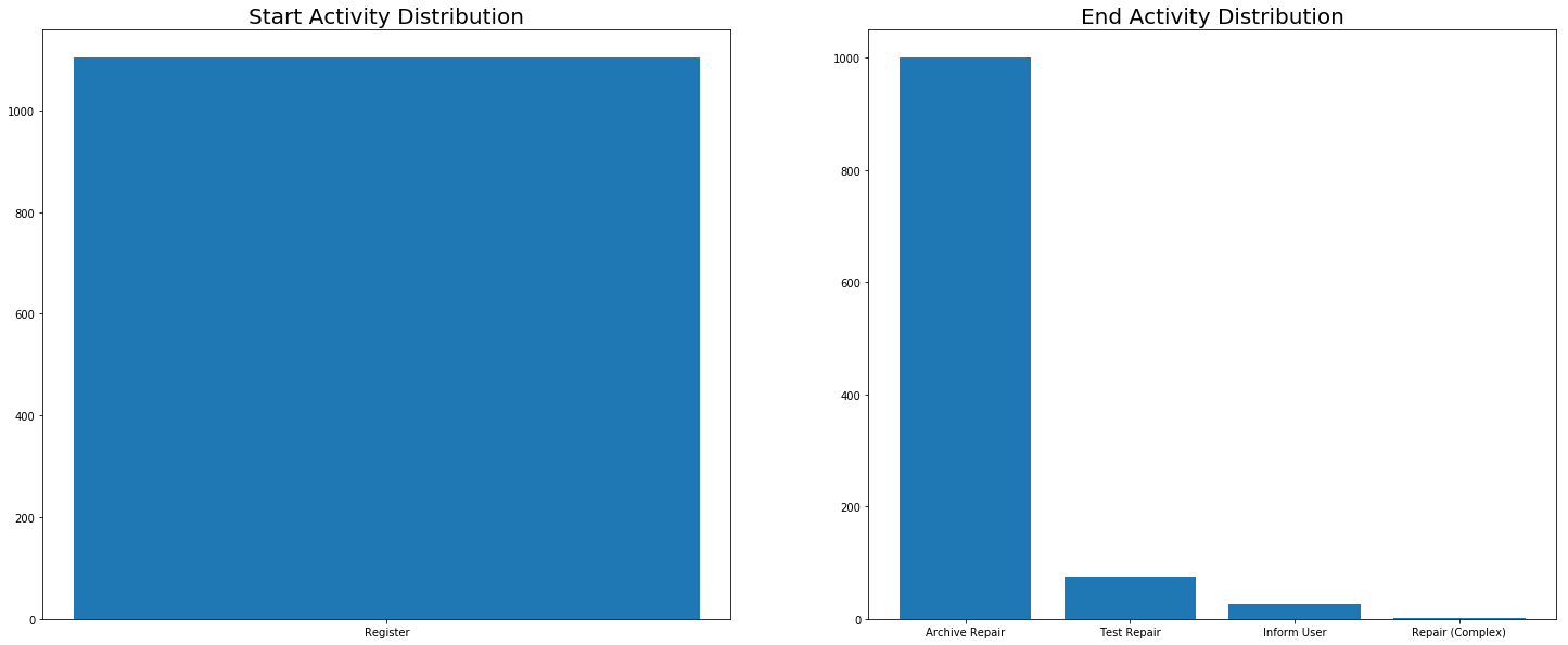 2. start activity와 end activity의 분포를 bar chart로 표현해본다.