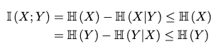 우리가 MI를 사용할 때에 서로 다른 random variable의 집합 간의 dependence를 비교해야 한다면, MI 값에 대한 normalizaiton이 필요한 경우도 있을 것이다. 이를 위해 등장한 개념이 Normalized Mutual Information이다. 우선, 우리가 위에서 유도한 MI와 conditional entropy의 관계식 특성을 살펴보겠다.