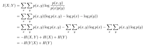 Mutual Information 식을 conditional entropy로 다시 표현하면 아래와 같이 표현할 수 있다.