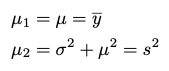 parameter과 theta_1과 theta_2의 두 개이므로, 이론적인 1차 moment와 2차 moment를 구해보면 아래와 같다.