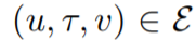 Multi-relational graph는 edge가 특정한 type을 가지고 있는 그래프를 의미한다. 예를 들어, 인스타그램 속 사람들의 관계를 나타내는 그래프가 있다고 하자. 이 관계에는 서로 팔로잉하는 관계, 한쪽만 팔로잉하는 관계, 차단한 관계 등 다양한 종류가 있을 것이다. 이러한 관계의 종류를 edge type이라고 부르는 것이다. Multi-relational graph의 edge는 다음과 같이 정의할 수 있다.