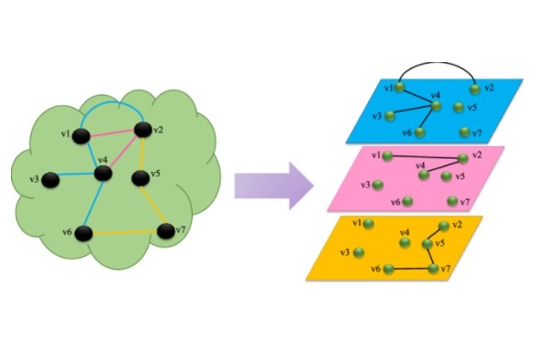이를 좀 더 직관적인 예시로 설명해보겠다. 예를 들어, 각 layer가 버스 / 기차 / 비행기의 교통수단을 표현하고, 각 노드가 도시들을 표현한다고 하자. 그럼 한 layer 내의 intra-layer edge는 각 도시 간의 버스편 / 기차편 / 비행기편이 있는지를 표현하고, inter-layer edge는 한 도시 안에서 교통수단을 환승하는 것을 의미할 것이다.