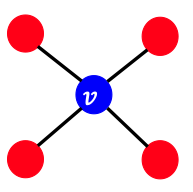 위 예시 그래프의 clustering coefficient는 얼마가 될까? 노드 v의 degree가 4이기 때문에 분모는 6(4C2)이 될 것이고, 분자는 v에 연결된 엣지를 제외한 모든 엣지가 될 것이므로 3이 될 것이다. 그러므로 clustering coefficient는 0.5이다. 그렇다면 같은 노드를 가지고 있다고 할 때 clustering coefficient가 0인 그래프는 어떤 형태일까? 아래와 같은 형태가 될 것이다.