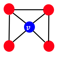 위 예시 그래프의 clustering coefficient는 얼마가 될까? 노드 v의 degree가 4이기 때문에 분모는 6(4C2)이 될 것이고, 분자는 v에 연결된 엣지를 제외한 모든 엣지가 될 것이므로 3이 될 것이다. 그러므로 clustering coefficient는 0.5이다. 그렇다면 같은 노드를 가지고 있다고 할 때 clustering coefficient가 0인 그래프는 어떤 형태일까? 아래와 같은 형태가 될 것이다.