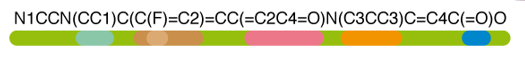 이 분자를 SMILES 표기법으로 표현하기 위해서는, 수소 (H)를 모두 제거하고, 단일 결합을 생략하면 된다. 그러므로 아래와 같이 해당 분자를 표현할 수 있다.
