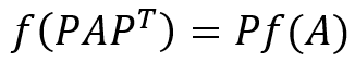 위 식에서 A는 adjacency matrix, P는 행과 열의 순서를 바꾸는 permutation matrix이다. 위 식은 위에서 설명한 것처럼 adjacency matrix 내의 노드의 순서가 바뀌어도 함수의 결과가 바뀌지 않는다.