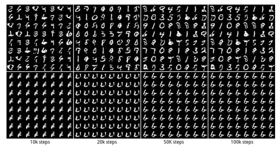 GAN은 대표적인 generative model로, image generation 등에서 아주 좋은 성능을 보였다. 하지만 이러한 GAN도 한계점을 가지고 있다. GAN의 대표적인 한계점은 mode-collapse이다. Mode-collapse는 generator와 discriminator 중 하나가 너무 학습이 잘 돼서 다른 하나의 학습이 진행되지 않는 것을 말한다. 예를 들어, generator가 하나의 정말 진짜같은 가짜 데이터를 생성한다면, discriminator는 이를 항상 구별할 수 없을 것이고, discriminator는 더 이상 학습을 진행할 수 없을 것이다.