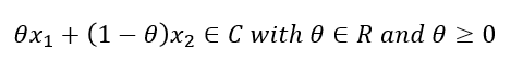 다음으로, convex set은 다음과 같이 정의할 수 있다. 두 점 $x_1$, $x_2$가 집합 $C$ 안에 속해 있을 때, 두 점을 잇는 선분 위에 있는 모든 점이 집합 $C$ 안에 항상 포함된다면, 이 집합 $C$는 convex set이라고 할 수 있는 것이다.