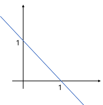 예를 들어, $x_1=(0,1)$, $x_2=(1,0)$이라고 하자. 그럼 이 두 점의 모든 affine combination은 다음과 같이, $(1,0)$과 $(0,1)$을 지나는 직선 형태로 표현할 수 있을 것이다. 즉, affine combination은 점들 간의 직선 위에 항상 위치한다.
