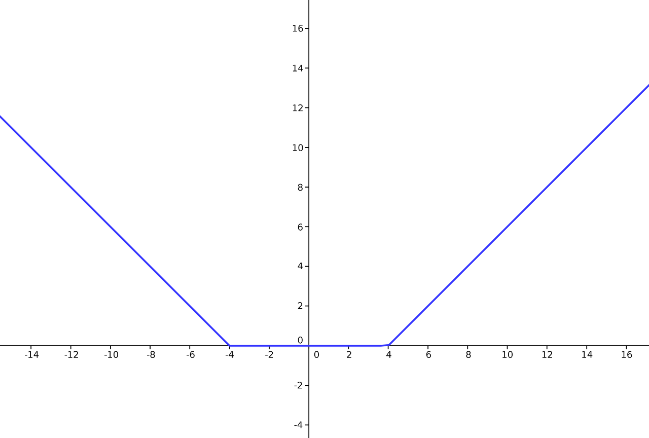 위 그림의 함수는 -4에서 4 사이에 있는 두 점을 이으면, 함수의 값과 선분의 값이 일치한다. 그러므로 이는 convex function이지만, strictly convex function은 아닌 함수이다.