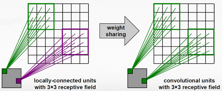 그리고 CNN은, 각 feature들마다 다른 neural network를 사용하는 것이 아닌, weight를 공유하는 neural network를 사용함으로써 효율적으로 파라미터를 사용한다.