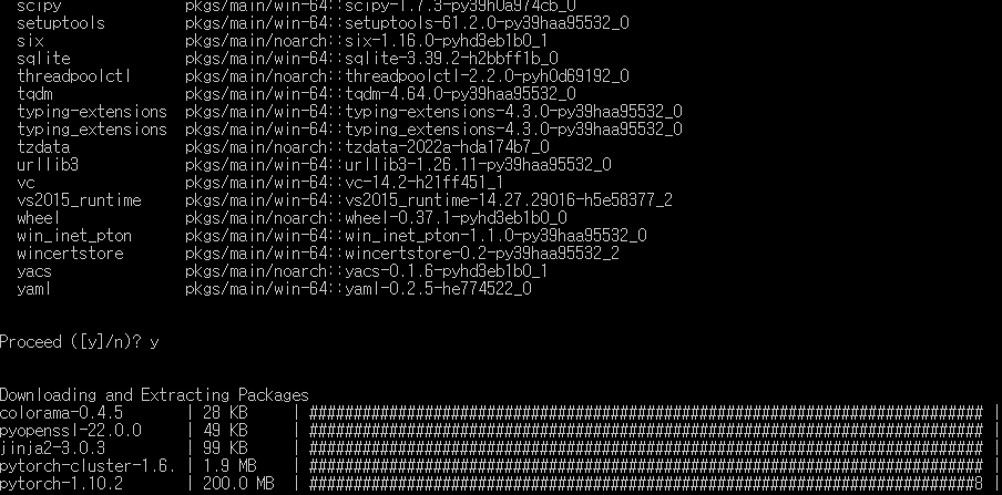 3. 다음 코드를 통해서 pyg를 설치해준다. Proceed?라는 문장이 나오면 y를 입력하면 된다.