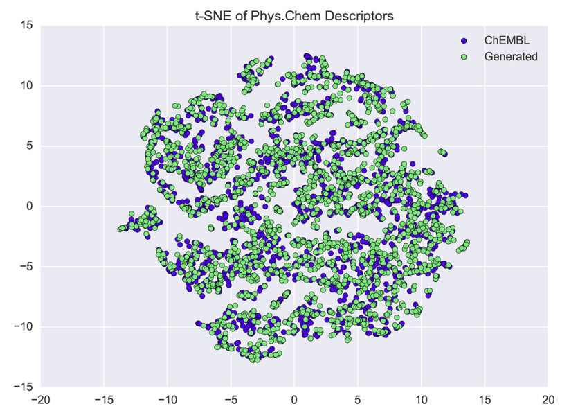 우선, CharRNN은 다음과 같이 학습한 molecule의 분포와 꽤나 비슷한 generated molecule들의 분포를 보였다. 이는 CharRNN이 training dataset의 특성을 잘 학습했음을 뒷받침한다.