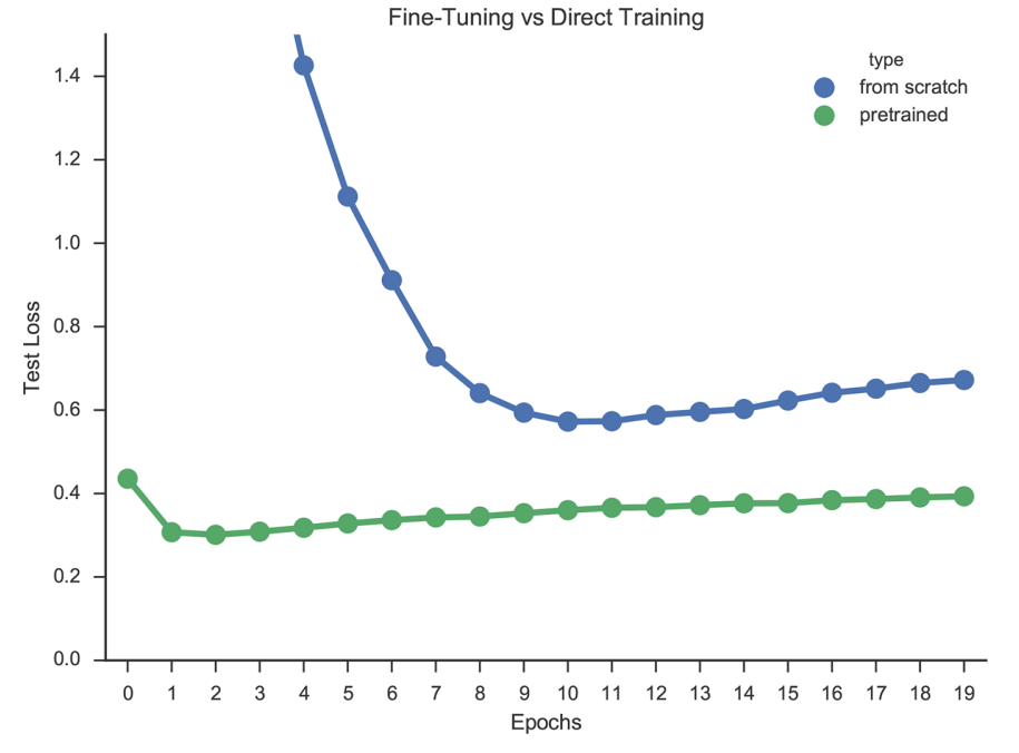 다음으로, transfer learning을 통해서 loss를 굉장히 효율적으로 줄여나가는 학습 과정을 보이기도 했다. 그 결과는 다음과 같다.