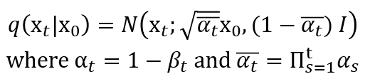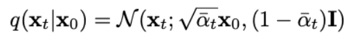 이는 우리가 기존 diffusion model에서 알아보았던 것처럼 다음과 같은 형태로 정의할 수 있다. (증명은 diffusion model 글을 참고한다.)
