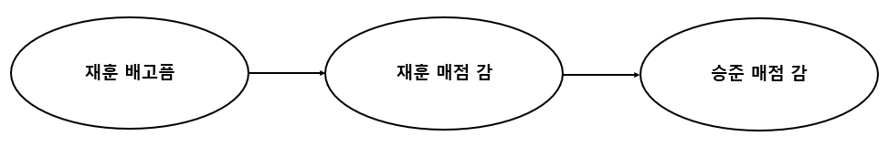 위 예시에서는 재훈이 배고프면 재훈이 매점을 가는데, 재훈이 매점을 가면 승준이 (배가 안 고픈데도 의리로) 매점에 가는 것이다. 즉, 각 노드들이 sequential하게 연결되어 있는 구조를 우리는 cascading이라고 부른다. 세 변수 A, B, C가 A->B->C 형태로 연결되어 있으면 다음과 같은 조건부 독립이 성립한다. 즉, B가 주어지면 A와 C는 독립인 것이다.