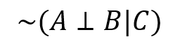 위 예시에서는 재훈이 바닥을 조립하고, 승준이 가구를 조립하면 윤희의 집이 완성되는 것이다. 윤희는 염치가 없다고 할 수 있다. 이것처럼 각 노드들이 v 형태로 연결되어 있는 구조를 우리는 V-structure라고 부른다. 세 변수 A, B, C가 C가 아래에 있는 V-structure 형태로 연결되어 있으면 다음과 같이 조건부 독립이 성립하지 않는다. 즉, C가 주어지면 A와 B는 독립이 아닌 것이다.