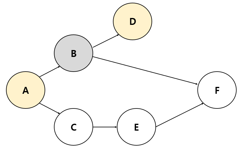 하나의 예시로 우리는 A와 D가 B가 주어졌을 때 독립인지 ($A \indep D | B$)를 알고 싶다. 이를 위해서는 B가 막혀 있을 때 A로부터 D로 공을 굴릴 수 있는지를 살펴보면 될 것이다. 아쉽게도, A가 열심히 공을 굴려도 F로까지밖에 갈 수 없다. 그렇기 때문에 A와 D는 B가 주어졌을 때 독립이다.