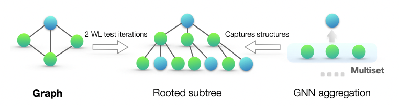 위에서 언급한 것처럼 우리는 현재 노드의 이웃 노드들의 multiset을 input으로 받는 aggregation function의 expression power를 올리는 것을 목적으로 한다. 그리고 가장 이상적인 GNN은 WL test처럼 다른 구조를 가지는 그래프를 다른 representation으로 매핑할 수 있어야 한다. 이를 위해서는 다음과 같은 두 가지 조건이 만족되어야 한다.