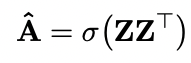 Decoder는 latent vector를 그래프로 다시 reconstruct한다. 즉, input으로 넣은 그래프가 encoder와 decoder를 거치면서 다시 원래의 input 그래프와 같은 형태가 되도록 weight matrix를 학습하는 것이 GAE의 목표인 것이다. Reconstruction은 다음과 같은 간단한 식을 통해서 이루어진다.