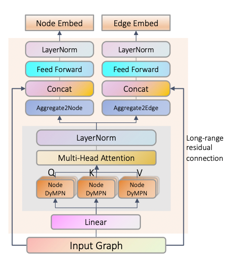 GTransformer의 특징 중 하나는 long-range residual connection을 사용한다는 점이다. 이는 initial 노드와 엣지 feature를 마지막 layer에 직접 넣는 것을 의미하고, vanishing gradient problem을 해결하고 over-smoothing도 어느 정도 해결해 준다.