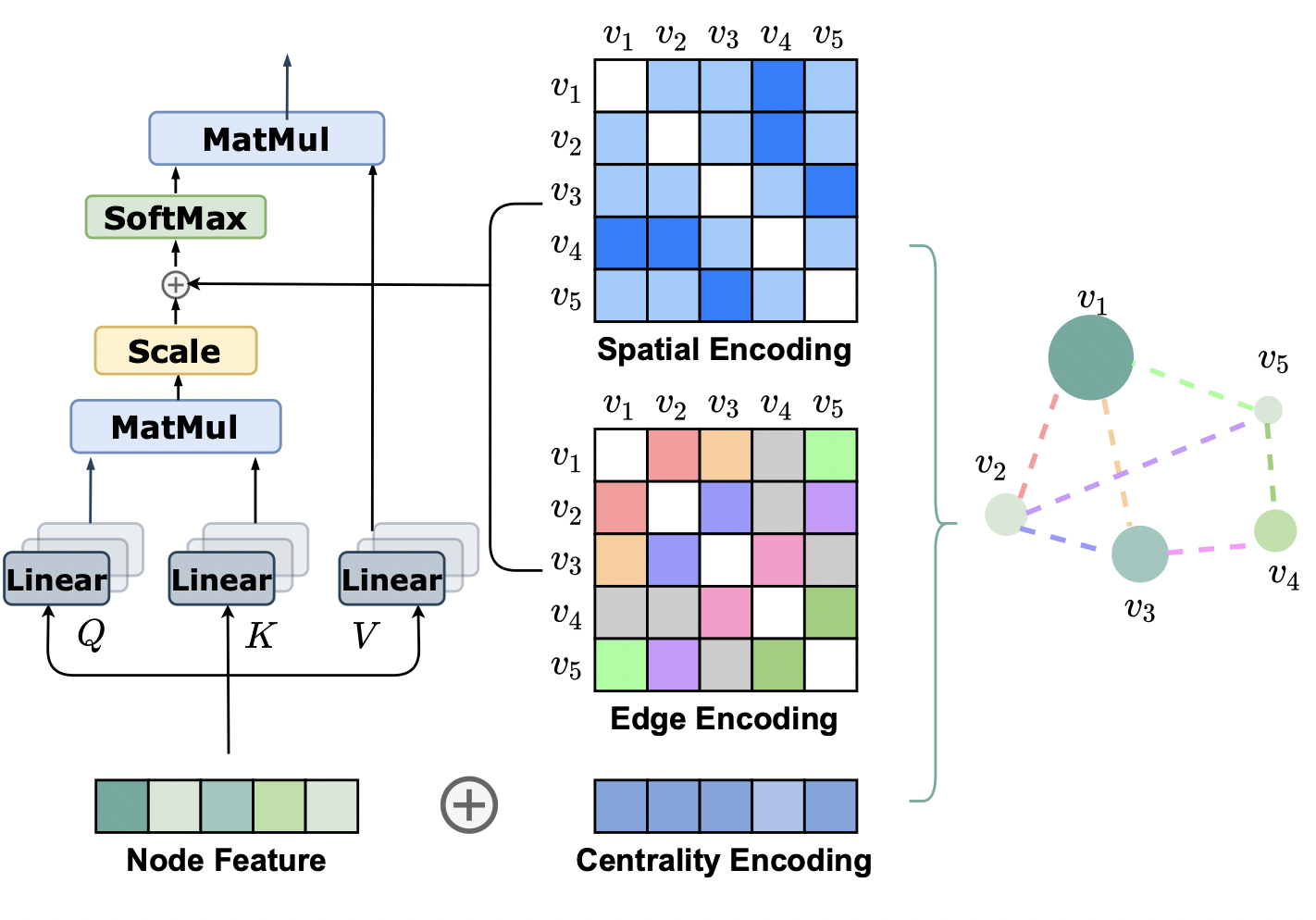 Ying, C., Cai, T., Luo, S., Zheng, S., Ke, G., He, D., ... & Liu, T. Y. (2021). Do transformers really perform badly for graph representation?. Advances in Neural Information Processing Systems, 34, 28877-28888.
