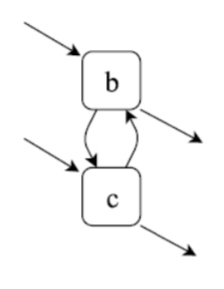 여기서 cut을 다시 찾는다. XOR cut이 있는가? 없다. sequence cut이 있는가? 없다. parallel cut이 있는가? 이 말은 위에서도 말했지만, 나누었을 때 각 partition에 start와 end activity가 모두 포함되고, 각 element들이 모두 양방향으로 연결되어 있는가? 라는 의미이다. b, c를 나누었을 때 조건을 만족하는 것을 알 수 있다. 있다!
