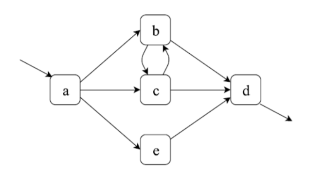 이를 이용하여 시작하는 액티비티와 끝나는 액티비티까지 DFG에 함께 표현해준다. 그러면 아래 그림과 같이 DFG에 시작하는 액티비티인 a에 들어가는 화살표(시작 표시), 끝나는 액티비티인 d에 나가는 화살표(끝 표시)가 추가된다.
