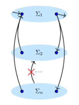 이를 정의로 나타내면 다음과 같다. 즉, 파티션 내의 구성요소들이 한 방향으로만 연결되어 있고, 반대 방향의 연결은 존재하지 않는 것을 의미한다. 이 때, 모든 각 구성 요소의 pair에 대해 다음 액티비티로 갈 수 있는 path가 존재해야 한다.