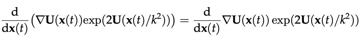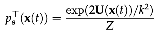 이 식을 통해 우리는 x(t)가 U(x(t))의 exponential에 비례하여, 즉 Boltzmann distribution을 따르면서 샘플링이 될 것이라는 것을 알 수 있다.