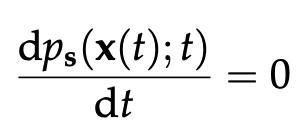 이 식을 가만히 살펴 보면 Fokker-Planck equation의 왼쪽 항과 같은 것을 알 수 있다. 그러므로 stationary distribution은 다음과 같은 식을 만족할 것이다.