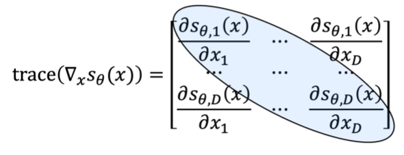 첫 번째 한계점은 trace의 계산이 굉장히 복잡하다는 것이다. 우리가 score matching의 objective에 있는 trace를 계산하고 학습을 진행하려면 항상 dimension 개수만큼의 back propagation을 해야 한다는 문제점을 가진다. 이러한 계산은 너무 복잡하기 때문에 이미지와 같은 높은 디멘션을 가지는 데이터에 score matching을 적용하는 것이 현실적으로 불가능해진다.