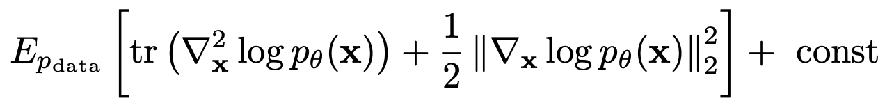 Score matching은 log-likelihood의 gradient인 score function을 학습함으로써 probability density function을 추정하는 것을 의미한다. Score matching의 objective는 다음과 같이 정의된다.