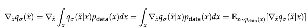 이 식을 활용해 우리의 denoising score matching objective를 다시 써보면 다음과 같은 식이 된다. 즉, x라는 데이터가 주어졌을 때의 perturbed x의 likelihood를 증가시키는 것이 perturbed x의 likelihood를 증가시키는 것과 같은 것이다.