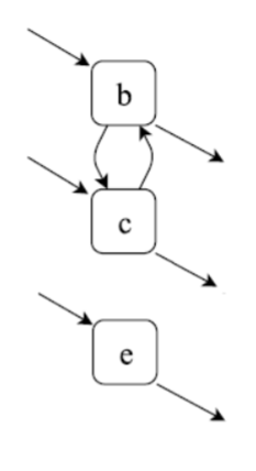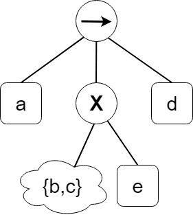 이를 process tree 그림으로 만들면 다음과 같다. 이것이 위의 프로세스 트리 그림에서 {b,c,e} 부분에 해당하는 것이다.