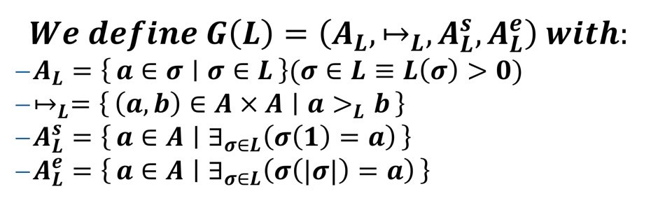 이를 정의로 나타내면 다음과 같다. 위에서 설명했듯이, 모든 파티션에 대해 start activity와 end activity가 각각 한 개 이상씩 포함되어 있고, 모든 element 쌍에 대해서 양방향으로 directly followed 관계가 존재해야 한다.