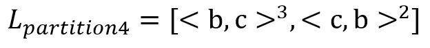 partition 3는 {b,c,e}이기 때문에, 이를 바꾸면 다음과 같다. 이 때, 로그 내의 액티비티의 순서는 그대로 유지해야 한다.