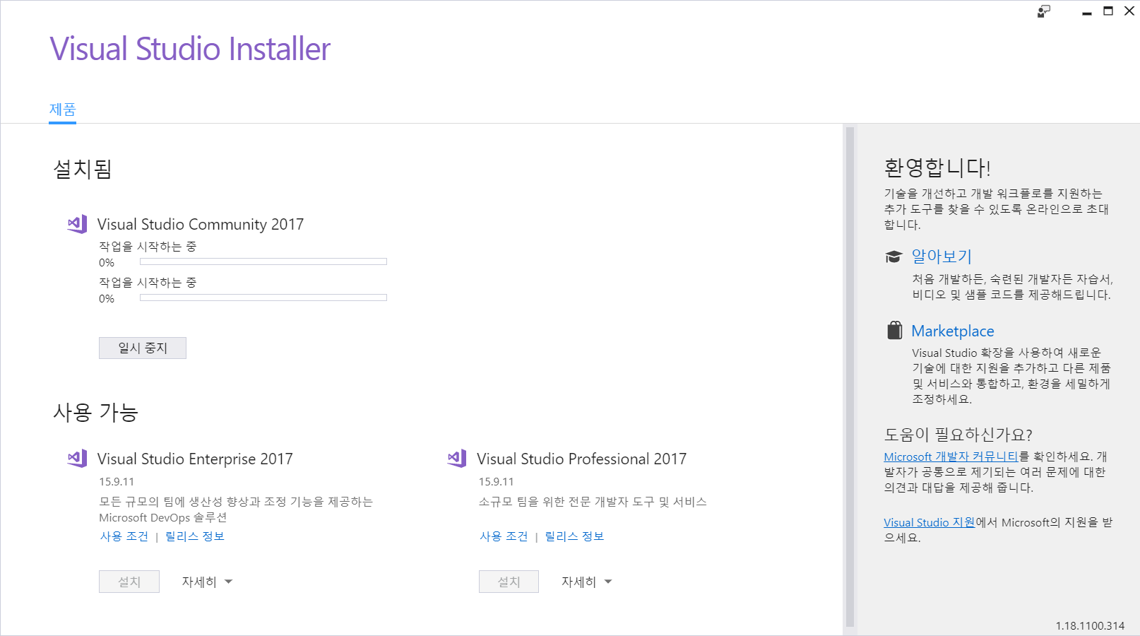 1. Microsoft Visual Studio 2017 complier를 설치한다.